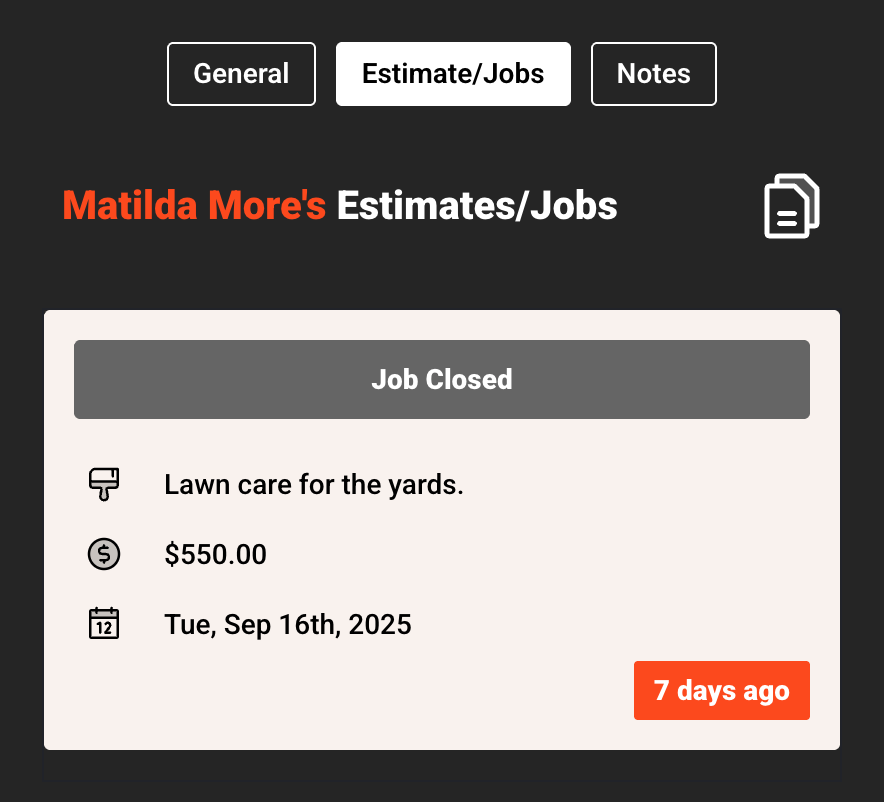 We added Client View in response to a customer request. This feature lets you see all jobs/estimates associated with a client and upload specific documents and notes for them. By keeping everything organized in one place, it’s easier to manage client history and stay on top of details.