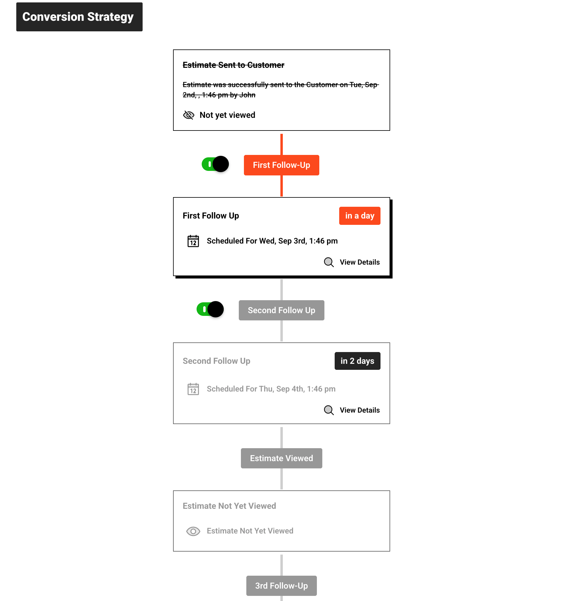 We built the Conversion Strategy feature to give our customers a smarter way to boost estimate approvals and sales. After identifying common challenges, like customers forgetting to view or approve estimates, we designed a system that automates follow-ups and adds persuasive elements to increase engagement. With Conversion Strategy, automated two-stage follow-ups remind customers to view and approve estimates, and you can include client testimonials and a countdown timer with a limited-time discount to create urgency. By combining automation with proven conversion tactics, this feature helps keep more opportunities from slipping through.