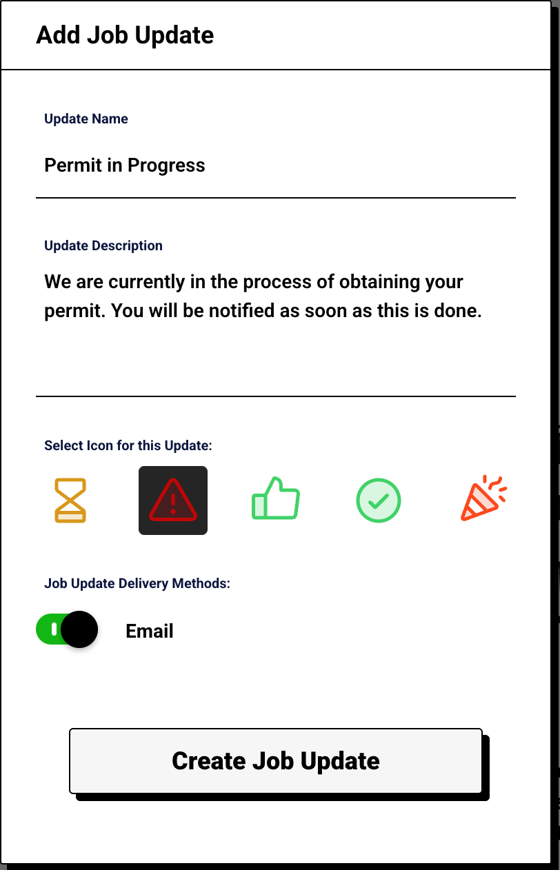 Keeping customers informed just got easier with our new Job Updates feature. This feature was implemented after a customer suggested the need for clearer communication when work was happening behind the scenes without scheduled events. With Job Updates, you can share progress notes, milestones, or important details, ensuring customers always feel informed and connected. This reduces uncertainty, minimizes check-in calls, and builds stronger trust in your service.